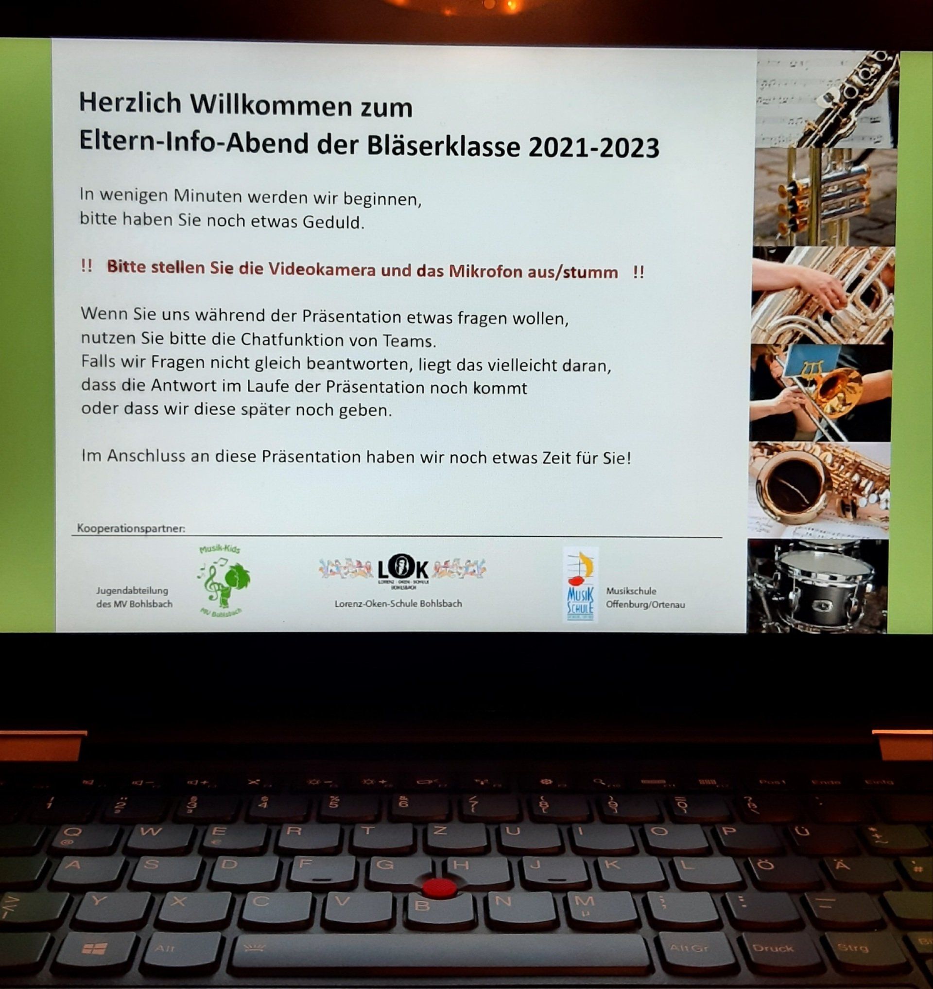 Nachdem der Musikverein Bohlsbach unsere erste Bläserklasse wegen Corona frühzeitig beenden musste, freuen wir uns umso mehr, dass wir trotzdem sechs Musikbegeisterte für die Jugendkapelle gewinnen konnten. Nun fand unser erster Elternabend für die Bläserklasse 2021/2023 statt. In Kürze wird noch ein zweiter Elternabend stattfinden und wir hoffen auf noch mehr interessierte Eltern bzw. Kinder.