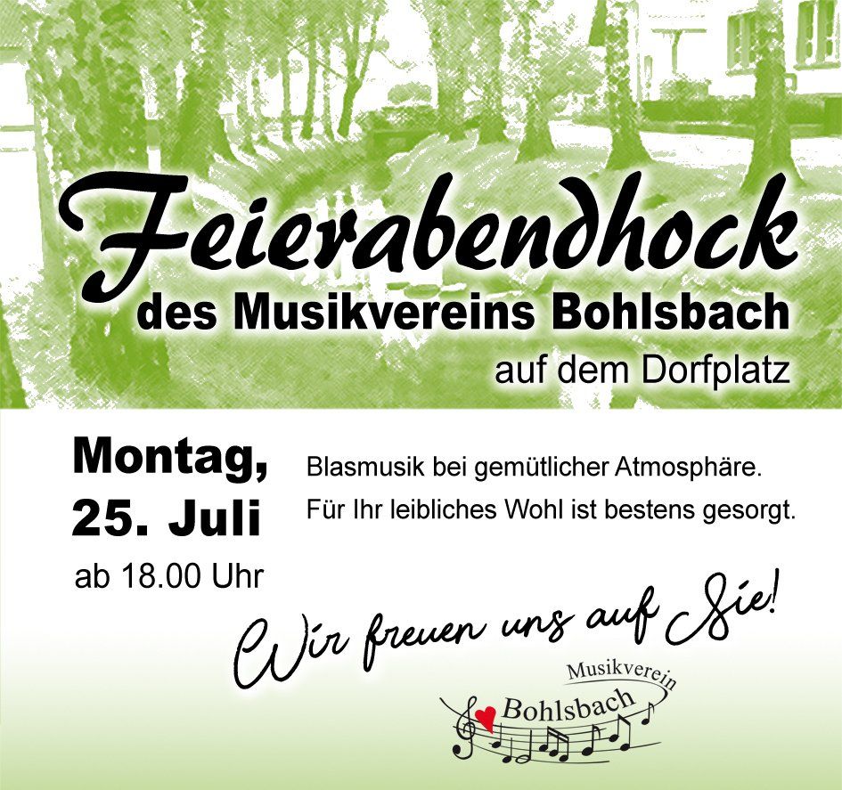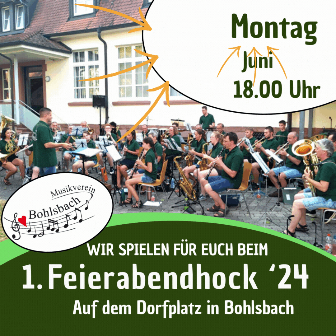 Die Musikerinnen und Musiker des Musikvereins Bohlsbach bedanken sich ganz herzlich bei allen Besuchern des Feierabendhock's. Danke, dass Sie unsere Gäste waren und uns nicht nur mit Ihrem ausdauernden Applaus unterstützt haben. Es war uns ein Vergnügen!