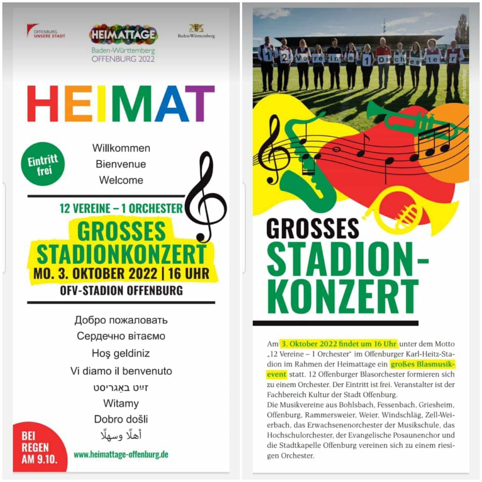 Nach 1094 Tagen war es am Samstag, den 24. September 2022, endlich wieder möglich, unsere Fans auf dem Ortenauer Weinfest in Offenburg musikalisch zu unterhalten. Die Musikerinnen und Musiker des Musikvereins Bohlsbach präsentierten sich bei der 63-sten Auflage des über die Grenzen der Ortenau bekannten Festes mit einem kurzweiligen sowie unterhaltsamen musikalischen Unterhaltungskonzertprogramm voller Spielfreunde.