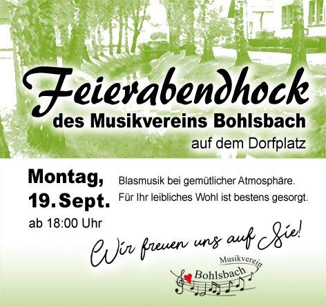 Auch der „Feierabendhock II“ des Musikvereins Bohlsbach, am Montag, den 19. September 2022, war ein voller Erfolg. Wir bedanken uns für ihr Kommen und ihre Unterstützung.