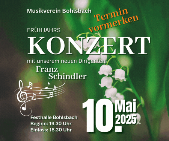 Die Musikerinnen und Musiker des Musikvereins Harmonie Bohlsbach freuen sich bereits schon heute, Sie am Samstag, den 06. November 2021, in der Sport- und Festhalle Bohlsbach, beim Jahreskonzert 2021 begrüßen zu dürfen. Merken Sie sich den Termin gut. Wir halten Sie auf dem Laufenden.